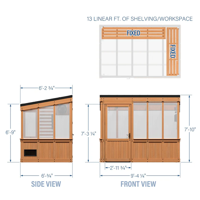 Create the perfect growing space with this cedar wood greenhouse, featuring a modern flat roof design and durable polycarbonate panels. Its sleek, minimalist look blends seamlessly with any backyard or garden while providing excellent protection for your plants.
