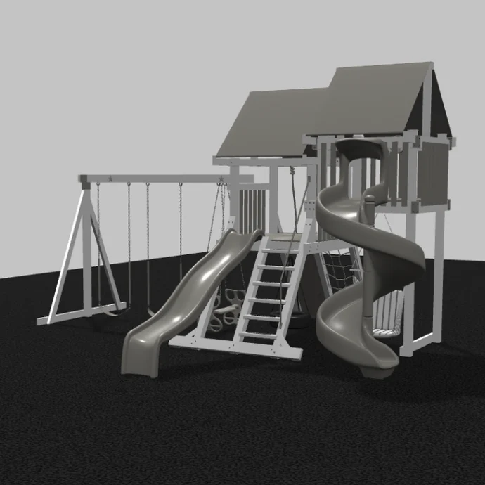 Twin Tower Vinyl Swing Set – Backyard Playground with Spiral Slide, Straight Slide, and Swings